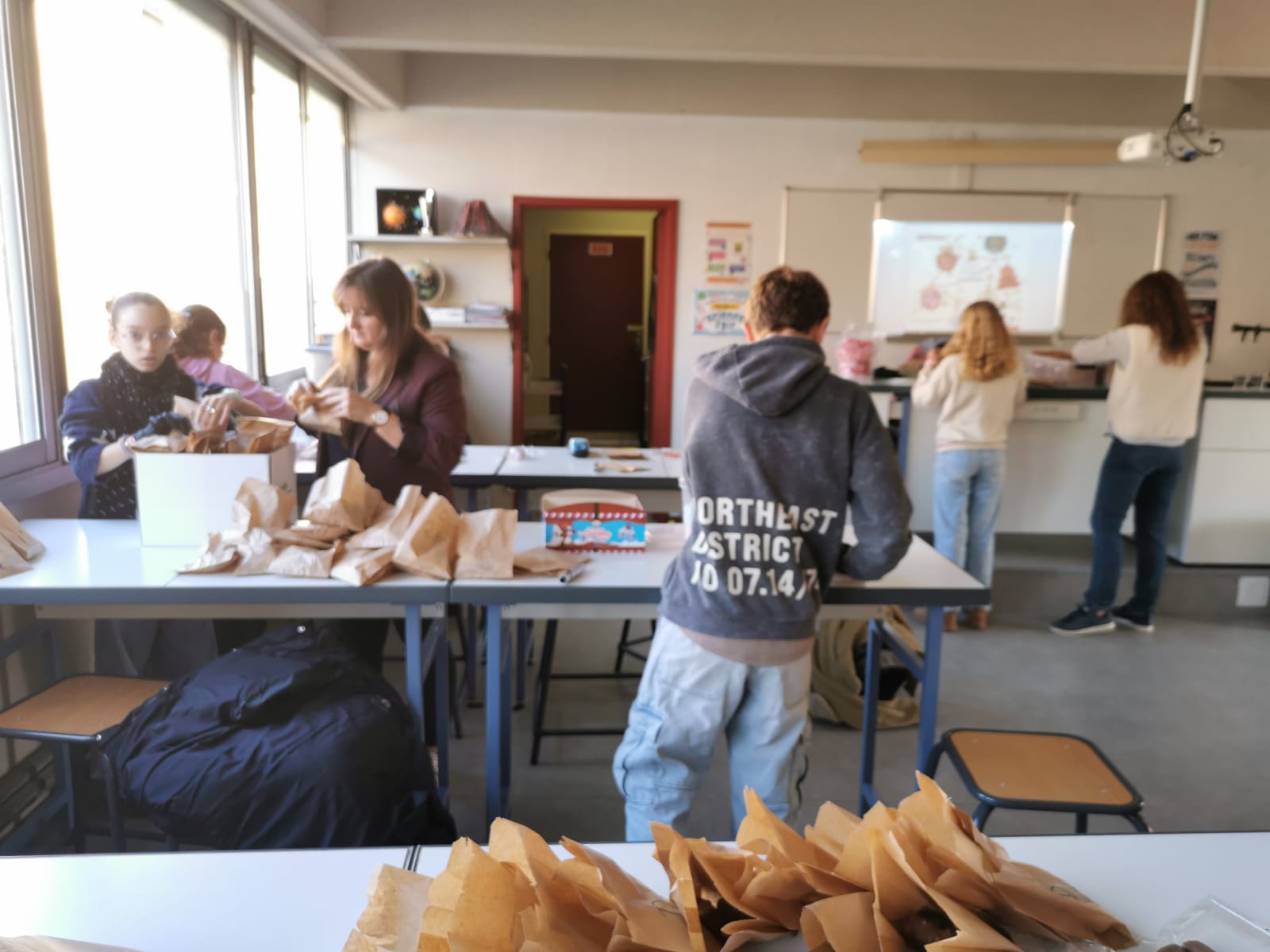 Ce vendredi 7 novembre 2025, les éco-délégués du collège ont remis en place les poubelles de tri dans toutes les salles de classes et dans la salle des professeurs. Les élèves et les enseignants peuvent y jeter le papier et le carton pour qu'ils soient recyclés.